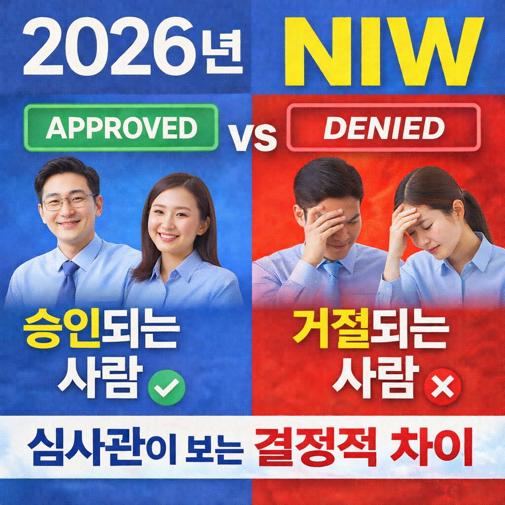 이 글에서는 2026년 기준으로 NIW 승인되는 사람과 거절되는 사람의 차이를 심사관 관점에서 명확하게 비교합니다.